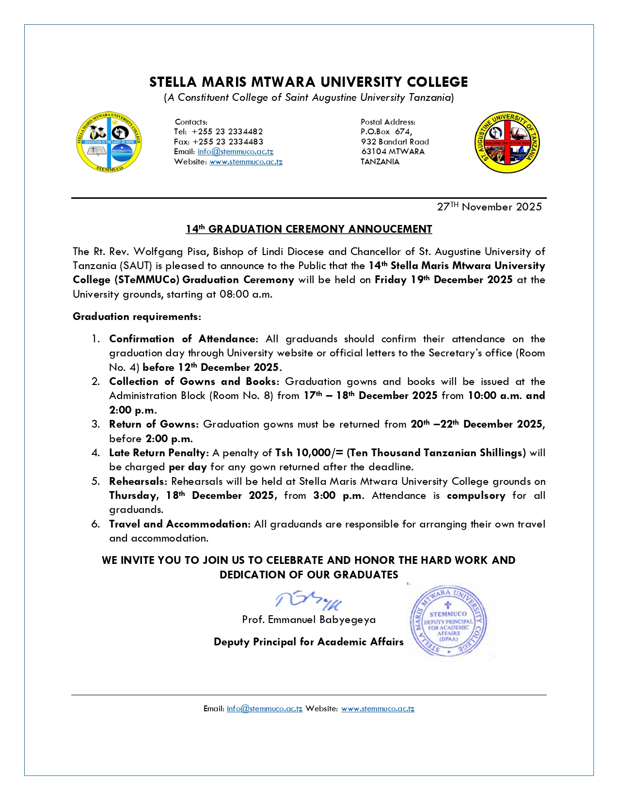 14th Graduation ceremony announcement